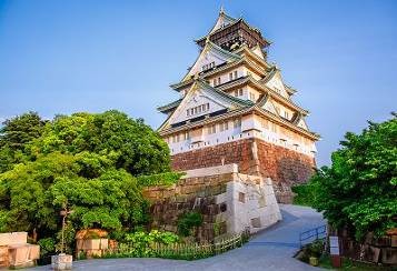 【大阪城公園】(不上天守閣)與名古屋城、熊本城齊名的三大名城之一,此城為日本名將『豐臣秀吉』所建造,其雄偉的石牆砌造佔地約百萬坪,分為本丸、二之丸和城廊之外的三之丸,四周以護城河圍繞,大阪城四周均為綠意盎然的公園綠地,秀麗的庭園和亭台樓閣、奇花異卉、滿目青翠、充滿詩情畫意。