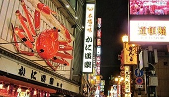 【道頓堀】大阪是遊客和狂歡者的天堂。在道頓堀,高聳的霓虹燈招牌、會所、酒吧以及供應當地特色美食的餐廳比比皆是。在這裡可以體驗到刺激而又不容錯過的大阪夜生活。道頓堀霓虹閃爍的建築牆面高高聳立,這證明了在霓虹燈作為一項極具前景的全新技術而佔據主導地位的時代,日本人所擁有的樂觀開朗的精神。整個地區都流露出這種濃郁的復古未來主義風格,對於想要領略典型的日本大都市氛圍的遊客,這裡可謂是不二之選。
